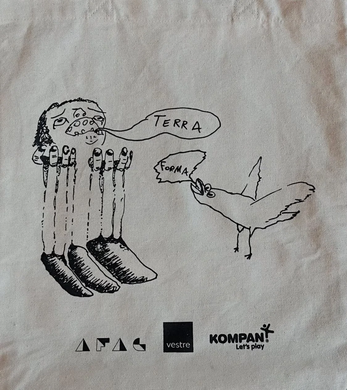 Salg av tote bag skjer på onsdagsforelesninger og kaffeslabberas